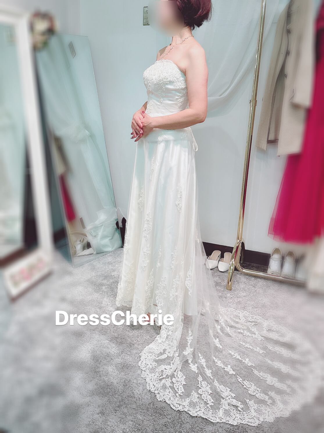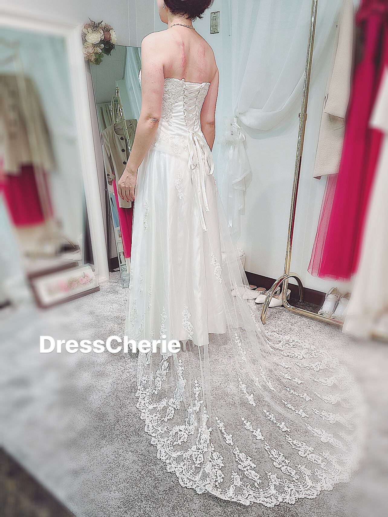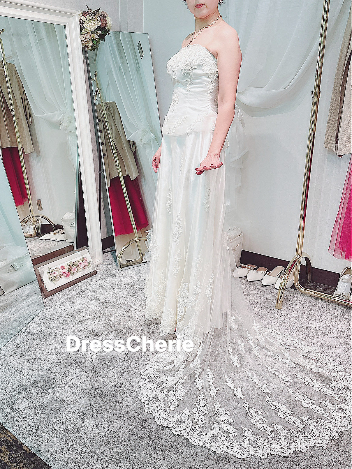 レーシーなトレーン付きのアンティークドレス